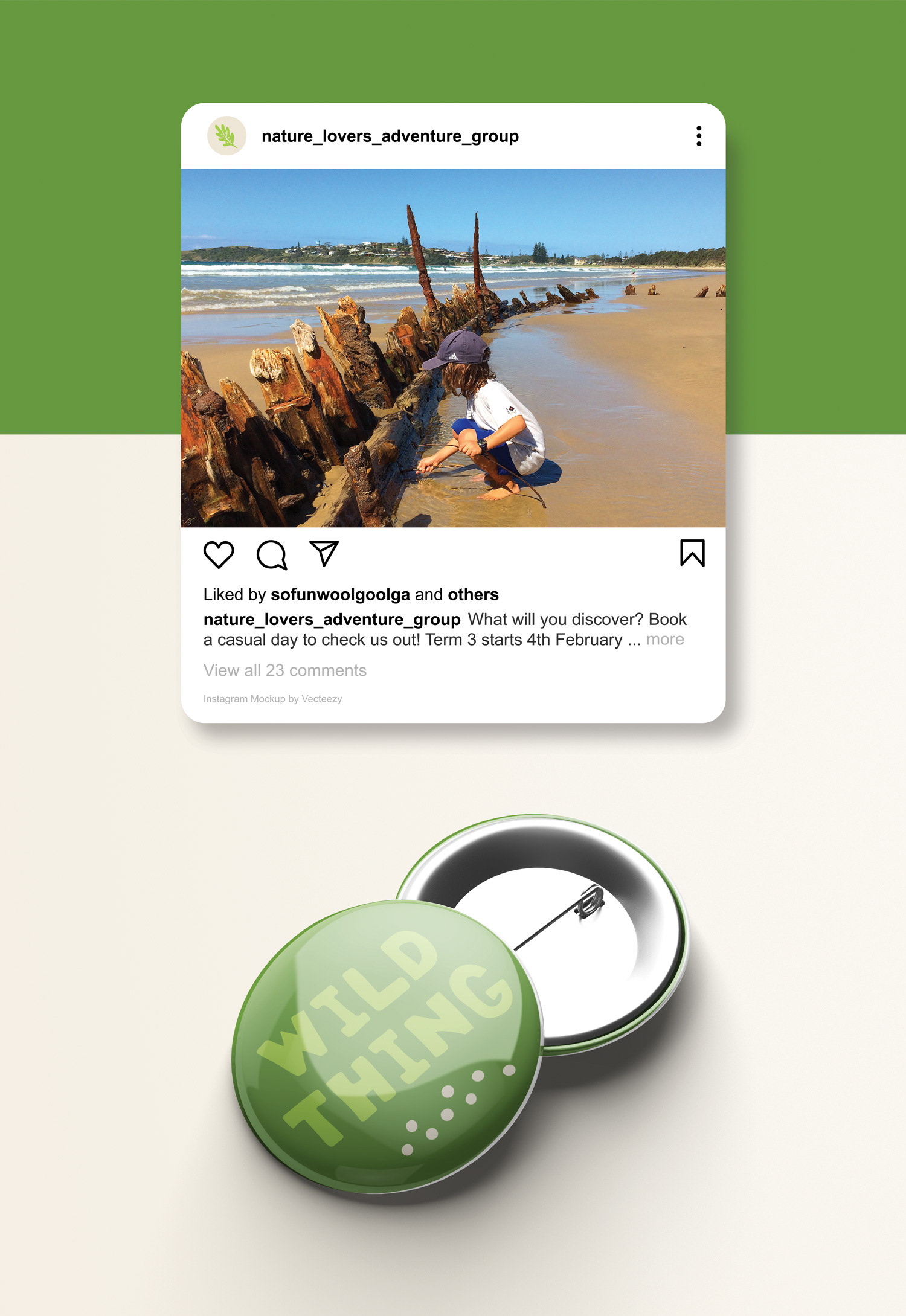 Brand identity for an education-based adventure playgroup for children, with activities and learning focused on the environment, native plants, and local wildlife and culture.